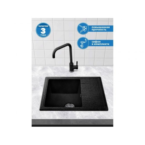 Мойка кухонная из искусственного камня PLATINUM черный 570х465 мм, AV Engineering