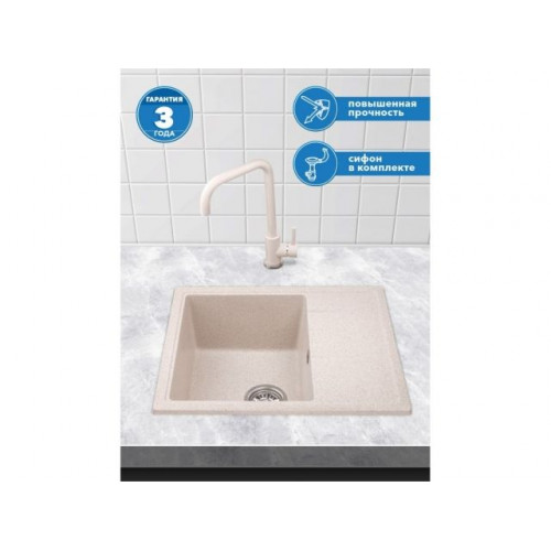 Мойка кухонная из искусственного камня PLATINUM песочный 570х465 мм, AV Engineering