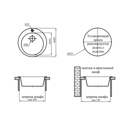 Размер мойки: 495 мм,