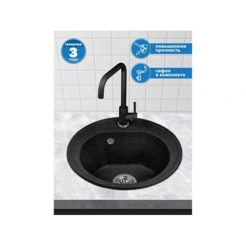 Мойка кухонная из искусственного камня RICHI черный 510х510 мм, AV Engineering