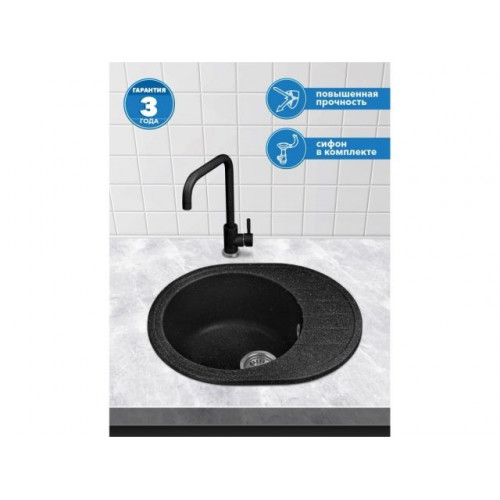 Мойка кухонная из искусственного камня RIO черный, 570х450 мм, AV Engineering