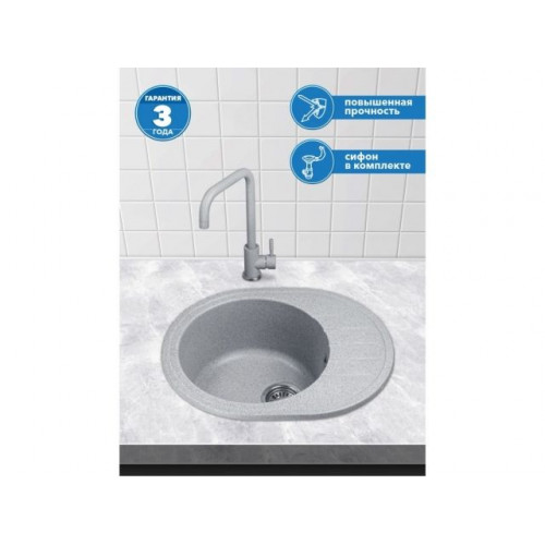 Мойка кухонная из искусственного камня RIO серый, 570х450 мм, AV Engineering
