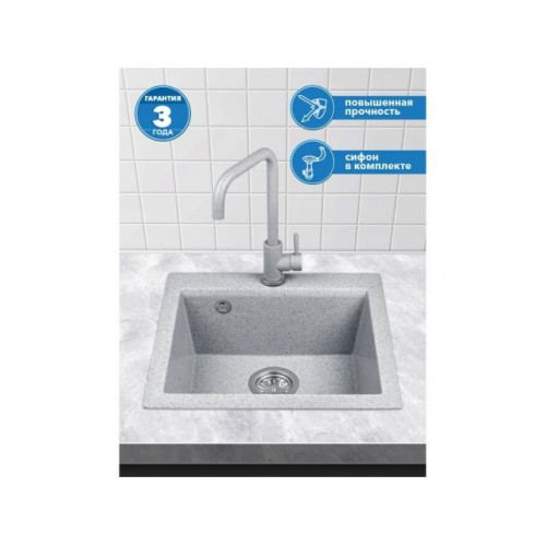 Мойка кухонная из искусственного камня SOLO серый 500х460 мм, AV Engineering