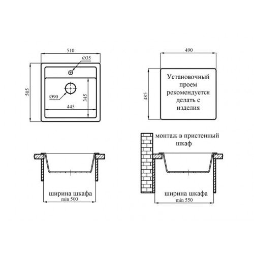 Размер мойки: 510х50 5мм,