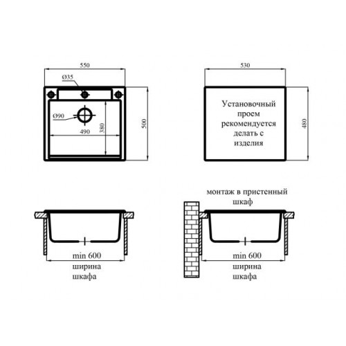 Размер мойки: 550х500мм,