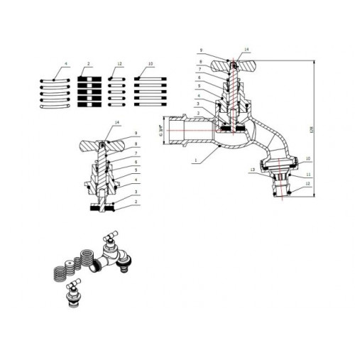 Кран водоразборный 3/4" нар. настенный со штуцером, AV Engineering