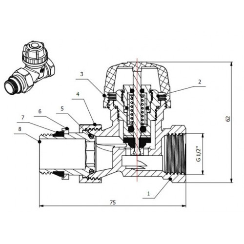 Кран вентильный прямой 1/2" вн.-нар. для радиатора под термоголову, AV Engineering