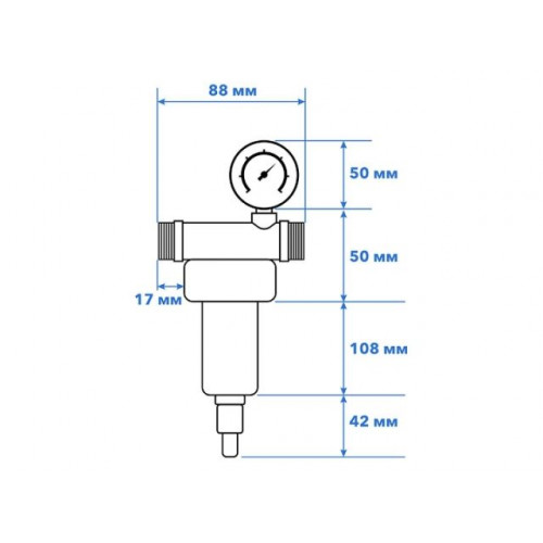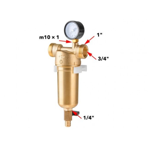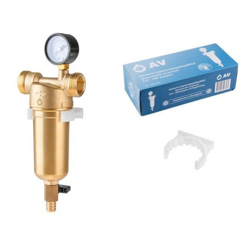 Фильтр самоочищающийся 1" нар. или 3/4"вн., 100 микрон, с манометром, AV Engineering (инд. упак.)