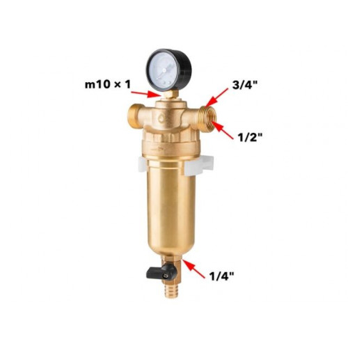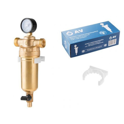 Фильтр самоочищающийся 3/4" нар. или 1/2" вн., 100 микрон, с манометром, AV Engineering (инд. упак.)