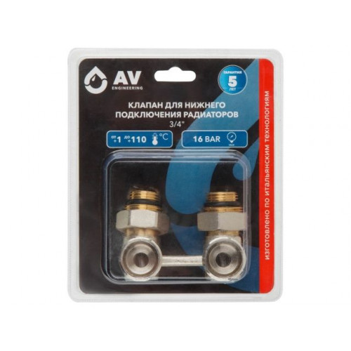 Клапан угловой шаровый 3/4" нар. для радиатора (мультифлекс), AV Engineering (инд. упак.)