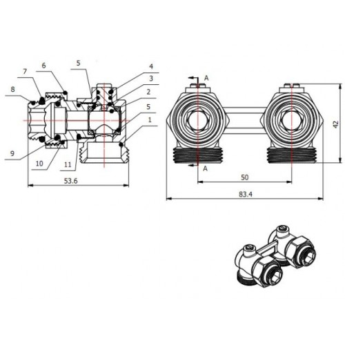 Узел нижнего подключения приборов отопления предназначен для подключения отопительных приборов с нижним расположением присоединительных штуцеров с межосевым расстоянием 50 мм к разводящим трубопроводам горизонтальных двухтрубных систем отопления.