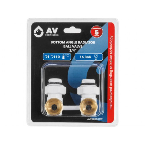 Клапан угловой шаровый 3/4" нар. для радиатора (мультифлекс), Белый, AV Engineering (инд. упак.)