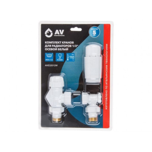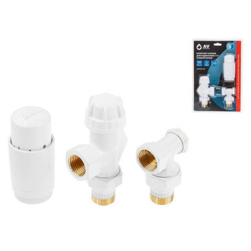 Комплект кранов осевой 1/2" для радиатора Белый, AV Engineering (инд. упак.)