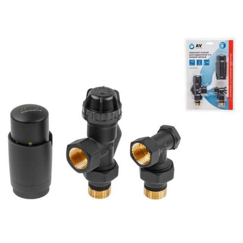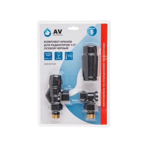 Комплект кранов осевой 1/2" для радиатора Черный, AV Engineering (инд. упак.)