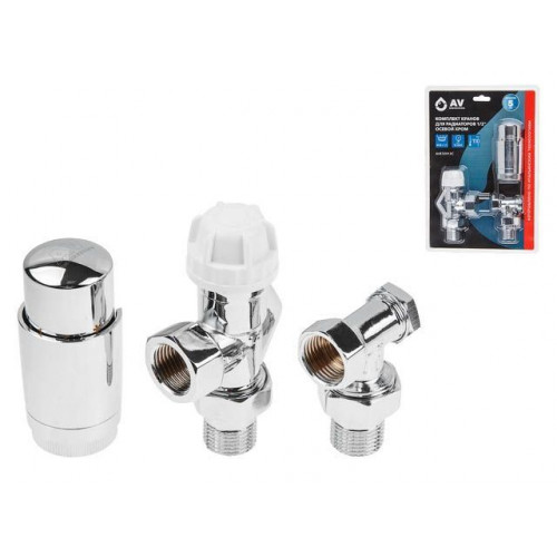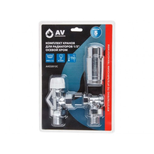Комплект кранов осевой 1/2" для радиатора ХРОМ, AV Engineering (инд. упак.)