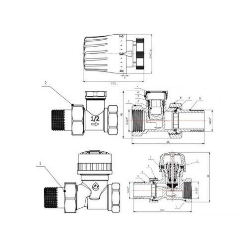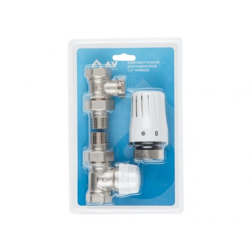 Комплект кранов прямой 1/2" для радиатора с термоголовкой, AV Engineering (инд. упак.)