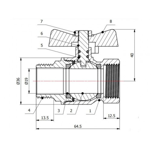 Кран шаровый 3/4" нар.-вн. бабочка PN40, AV Engineering