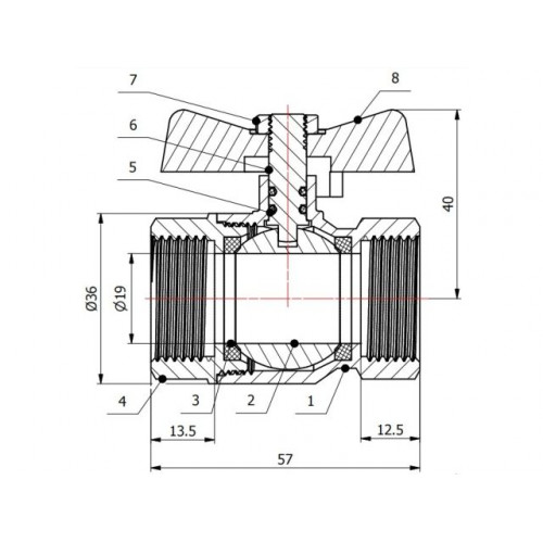 Кран шаровый 3/4" вн.-вн. бабочка PN40, AV Engineering