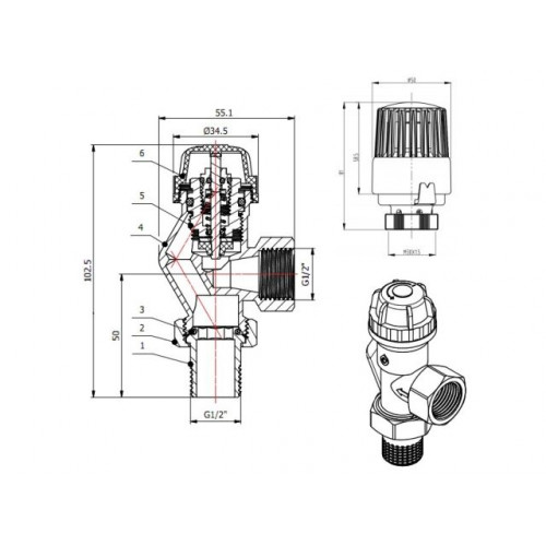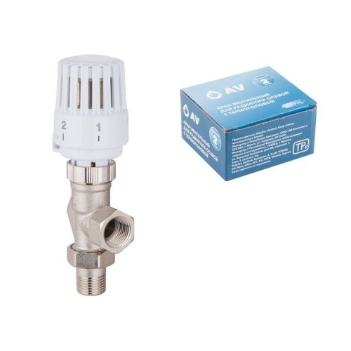 Кран вентильный осевой 1/2" вн.-нар. для радиатора с термоголовой, AV Engineering