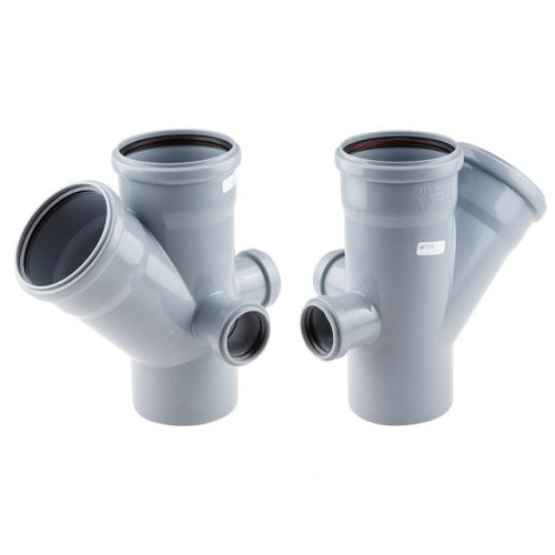 Крестовина двухплоскостная канализационная Ростурпласт диаметром 110 мм для монтажа систем внутренней канализации. Имеет 2 выхода: справа под трубу 50 мм