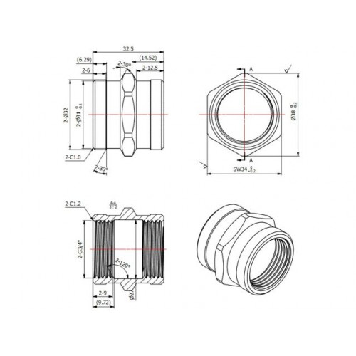 Муфта 3/4" вн.-вн., AV Engineering (инд. упак.)