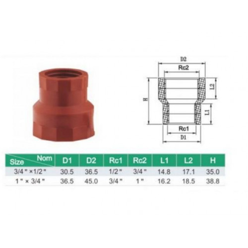 Муфта ПП ред. 3/4" вн. х 1/2" вн. кор., AV Engineering
