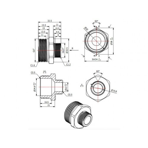 Ниппель ред. 1" нар. х 1/2" нар., AV Engineering (инд. упак.)