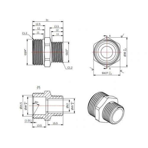Ниппель ред. под евроконус 3/4" нар. х 1/2" нар., AV Engineering (инд. упак.)