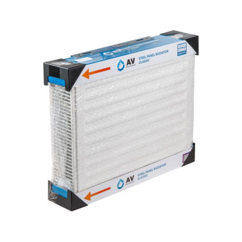 Стальной панельный радиатор AV Engineering предназначен для применения в закрытых однотрубных и двухтрубных системах водяного отопления для применения в закрытых однотрубных и двухтрубных системах водяного отопления ИЖС (индивидуальное жилищное строительство). Здания и сооружения пятого класса сложности (К-5). Панели свариваются сплошным роликовым швом из двух штампованных листов высококачественной, холоднокатаной стали, толщиной не менее 1,15 мм. Оребрение из стального листа, толщиной 0,35 мм, приваривается к панелям точечной сваркой. Все элементы радиатора окрашиваются в два этапа. Для монтажа радиатор имеет 4 присоеденительных отверстия диаметром 1/2" по бокам радиатора. К системе отопления радиатор может быть подключен как с правой, так и с левой стороны. Гарантия 10 лет.