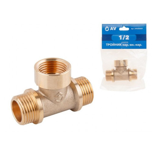 Тройник 1/2" нар.-вн.-нар., AV Engineering (инд. упак.)