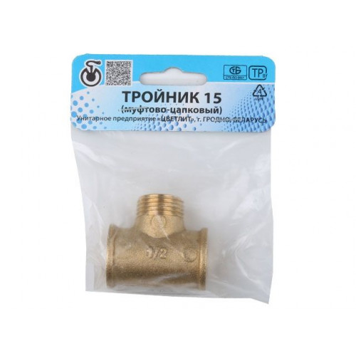 Тройник 1/2" вн.-нар.-вн., Цветлит (инд. упак.)