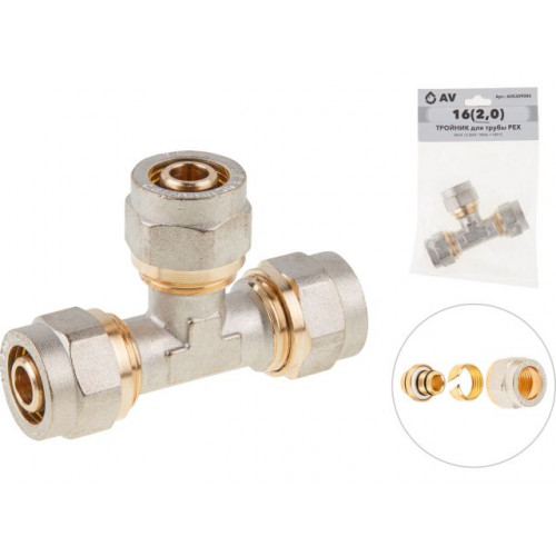Тройник 16(2.0) для труб PEX, AV Engineering (инд. упак.)