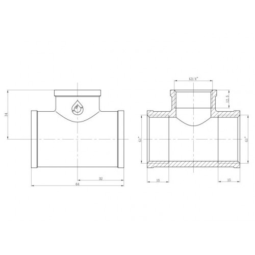 Тройник ред. 1" вн. х 3/4" вн. х 1" вн., AV Engineering (инд. упак.)