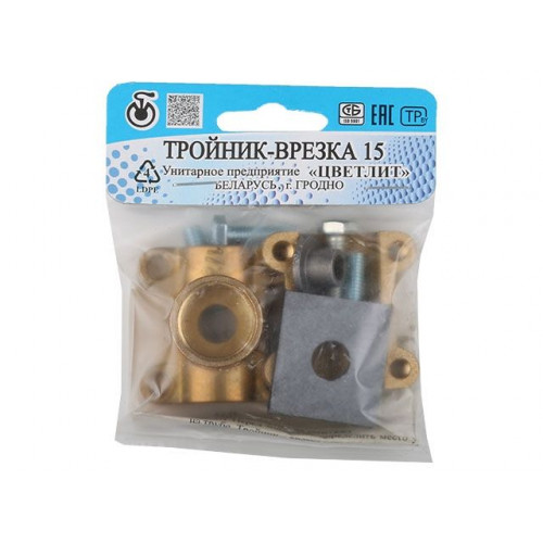 Тройник-врезка (хомут) 1/2 внутренняя резьба ЦВЕТЛИТ (ЦРБ0094) выполнен из латуни. Предназначен для соединения труб в быту и присоединения дополнительных приборов к имеющейся трубопроводной системе. Температурный режим материала до 200°С.