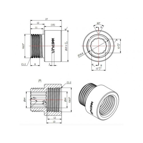 Удлинитель 1/2" вн.-нар. х 15 мм, AV Engineering (инд. упак.)