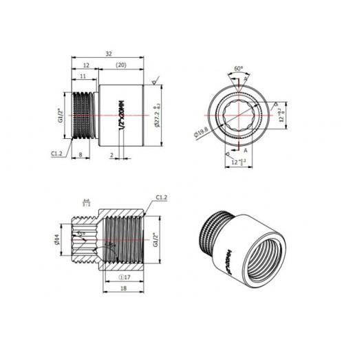 Удлинитель 1/2" вн.-нар. х 20 мм, AV Engineering (инд. упак.)