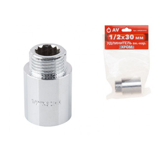 Удлинитель 1/2" вн.-нар. х 30 мм усиленный ХРОМ, AV Engineering (инд. упак.)