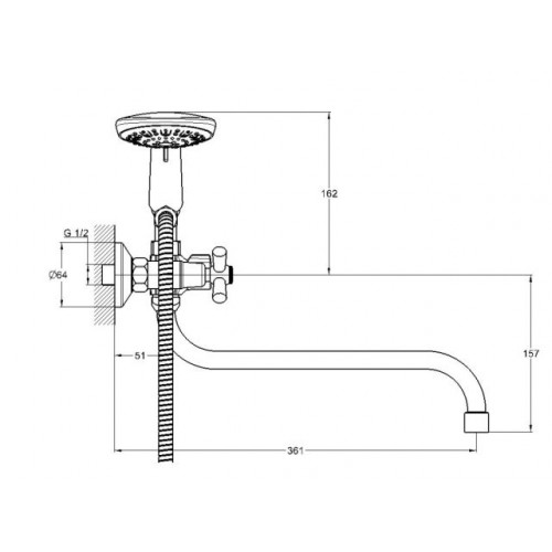 Диаметр резьбы душевого шланга, дюйм: 1/2",