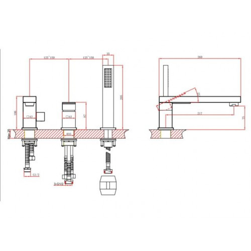 Смеситель для ванны (Lt) D35, серия Lily черный, a-five