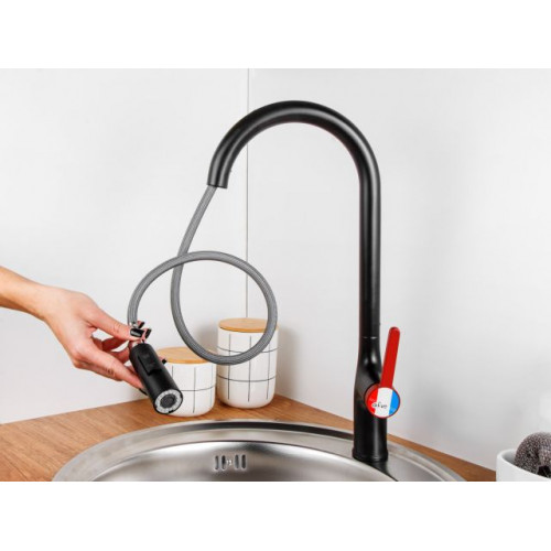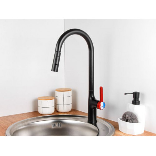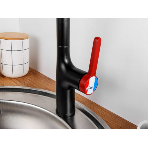 Смеситель для кухни (Lt) D35, серия Rose черный + красный, a-five