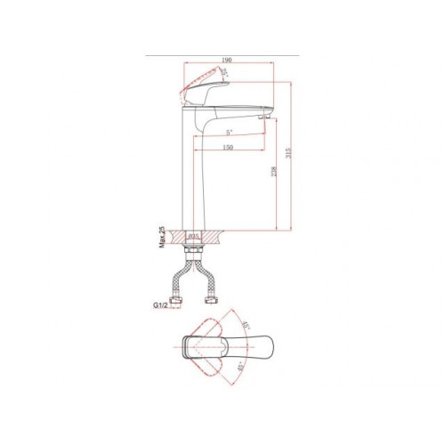 Угол поворота рукоятки вертик.: 25,