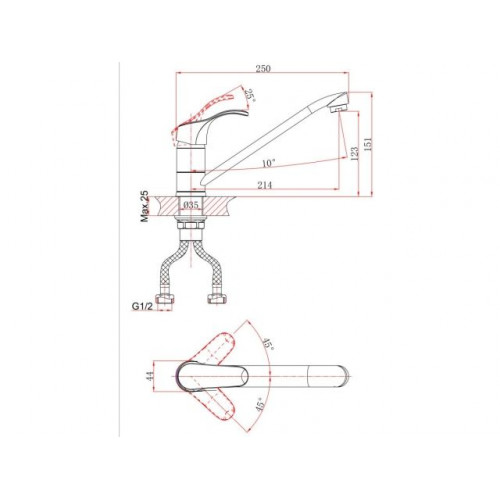 Угол поворота рукоятки вертик.: 25,