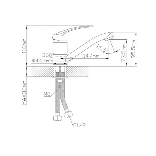 Угол поворота рукоятки гор.: 50°,