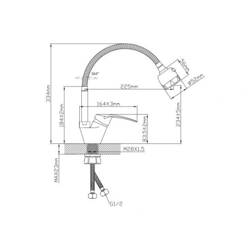 Аэратор с расходом 5,7 л/мин (класс А EU Regulation 66/2014) – экономия до 30% воды без потери напора.
