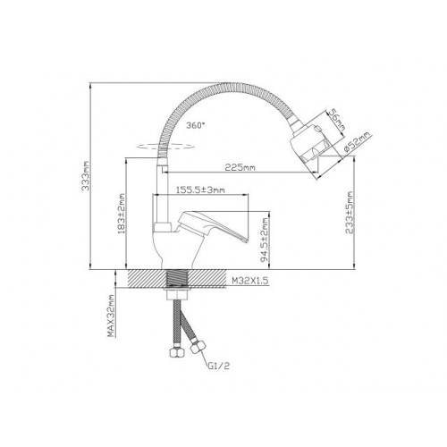 Длина излива, мм: 225,
