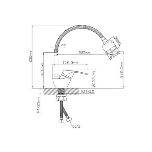 Аэратор с расходом 5,7 л/мин (класс А EU Regulation 66/2014) – экономия до 30% воды без потери напора.