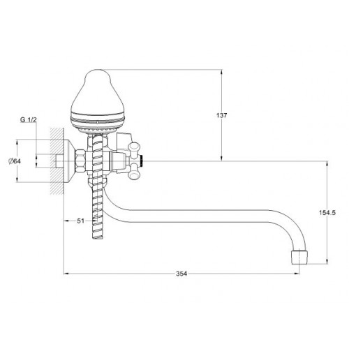Диаметр резьбы душевого шланга, дюйм: 1/2",