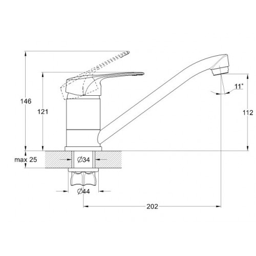 Угол поворота рукоятки вертик.: 25,