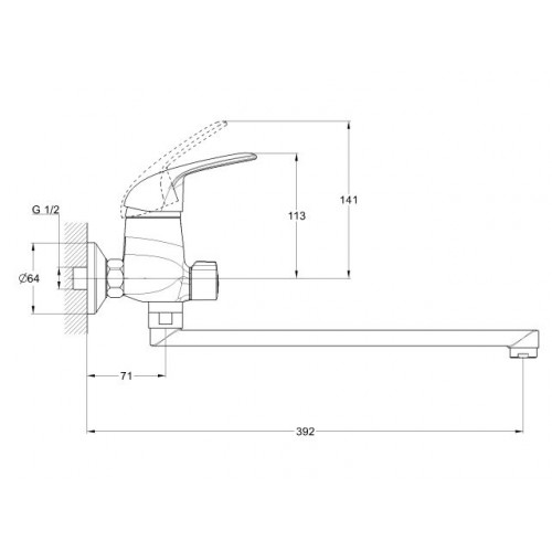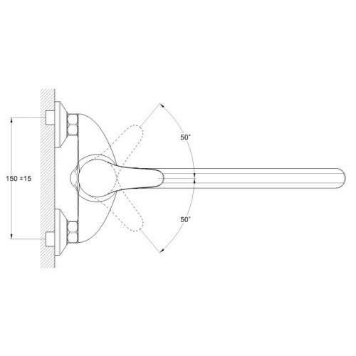 Угол поворота рукоятки гор.: 50°,