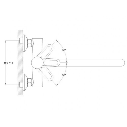 Угол поворота рукоятки гор.: 50°,